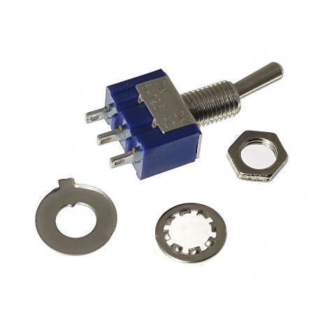 Przełącznik dźwigienkowy MTS-102 to wysokiej jakości komponent elektroniczny, który służy do przełączania między dwoma obwodami elektrycznymi. Jest to przełącznik dwupozycyjny, co oznacza, że można go przełączać pomiędzy dwoma stabilnymi stanami. Dzięki trzem pinom, przełącznik ten może być używany do różnych zastosowań w projektach elektronicznych.